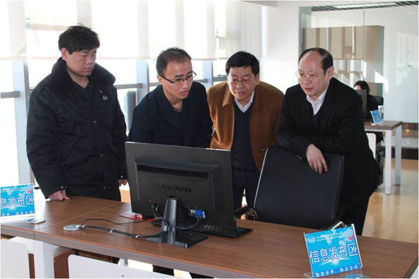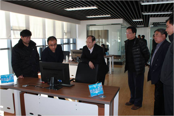 調研過程中,王局長認真觀看了我公司的宣傳片,參觀了內陸港大廳的各個服務窗口,了解了內陸港“一站式”服務模式。當他來到位于大樓七層的信息中心時,特別感興趣,詳細詢問了我公司物流信息公共服務平臺的主要功能及運營情況。