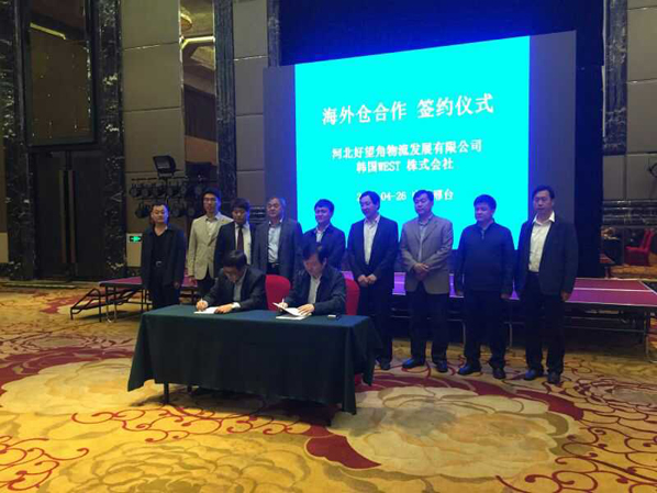 4月26日,我公司與韓國簽訂合作協議,就在兩國互設海外倉一事達成共識,副市長郭旭濤等領導出席簽約儀式。