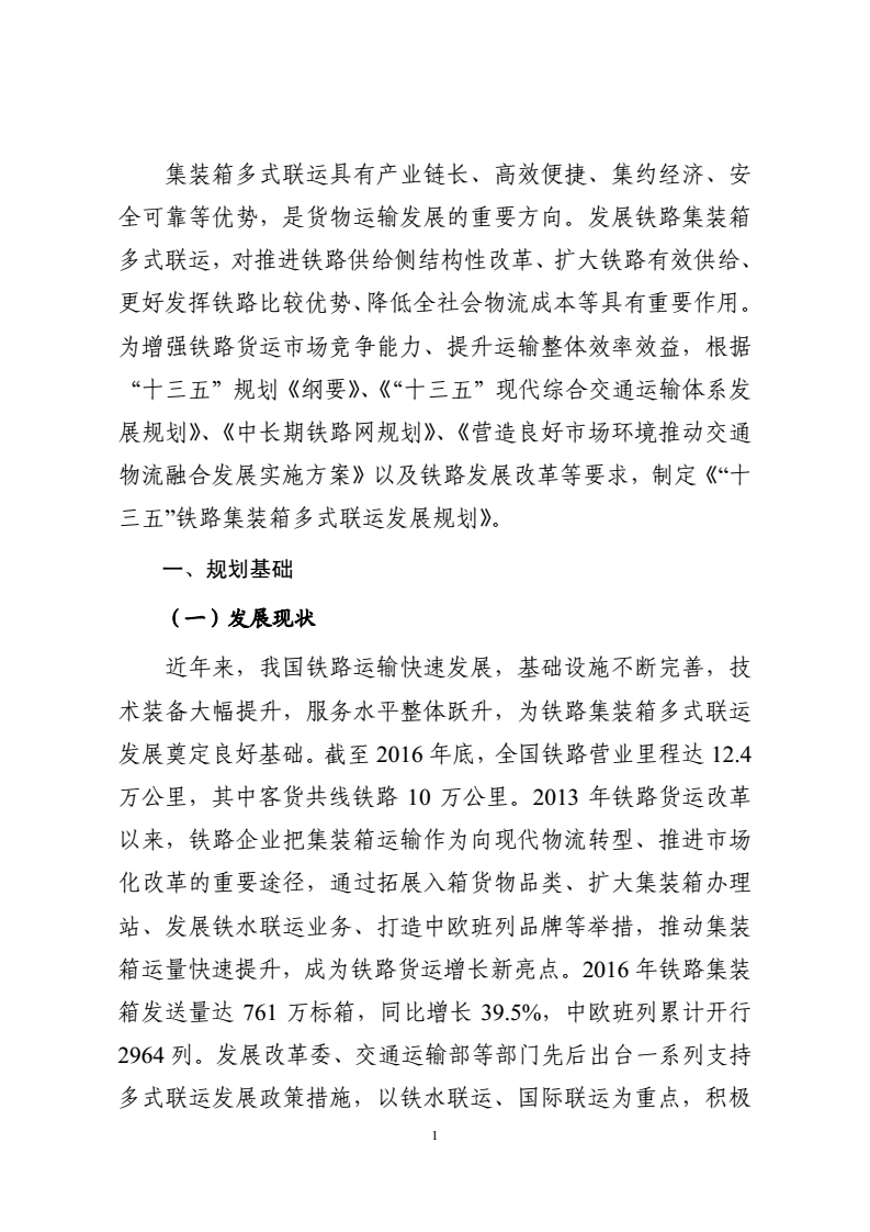 發(fā)改委 交通部 鐵總聯(lián)合發(fā)布'十三五'鐵路集裝箱多式聯(lián)運發(fā)展規(guī)劃(全文)
