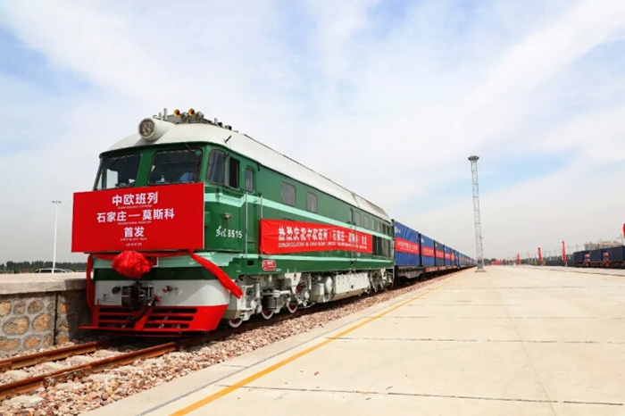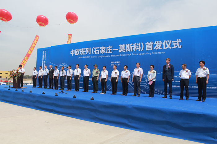 6月29日,中歐班列(石家莊-莫斯科)首發(fā)儀式在冀中南智能港隆重舉行。11點(diǎn)18分,隨著一聲火車汽笛長鳴,首列滿載貨物的中歐班列從冀中南智能港緩緩啟動,將經(jīng)由滿洲里出境駛往莫斯科。